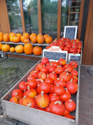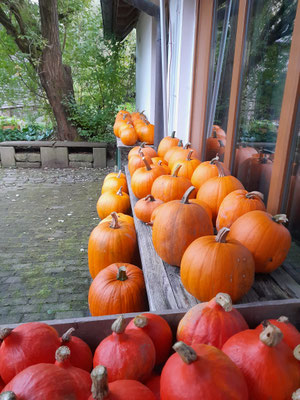 Außerdem haben wir etliche große Jack o´Lantern- Kürbisse, die zum dekorieren und Schnitzen einladen!