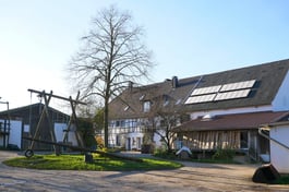Die Solaranlage auf dem Haupthaus erzeugt warmes Wasser für alle Wohnungen über einen Wärmetauscher im Speicherkessel der Holz-Heizungsanlage, die bei fehlendem Sonnenschein einspringen muss. Gesamtleistung pro Jahr: etwa 6.000 KW/h.
